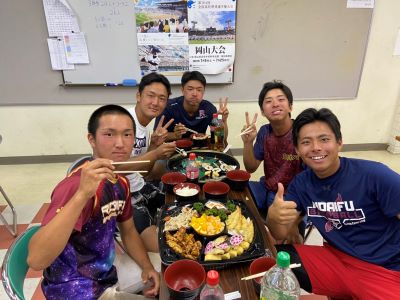 普段食べ慣れていない食事に野球部員全員が最高潮に盛り上がりました。 コロナ過という事もあり、学年別でソーシャルディスタンスを意識した形となりましたが、生徒たちはかなり満足していました。 今週にはいよいよ第104回全国高等学校野球選手権岡山大会が開幕します。 大会における各々の役割、ポジションは異なりますが、全員が一致団結し、不撓不屈の精神で頑張ります。 応援の程、宜しくお願い致します。 |