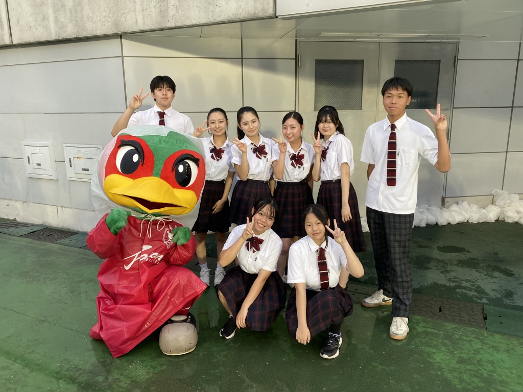 9月23日(火祝)、JFE晴れの国スタジアムでファジアーノvs横浜FCの試合が開催され、オープニングで毎年行われる「高校生ダンスパフォーマンス」に今年も理大附ダンス部が参加しました。