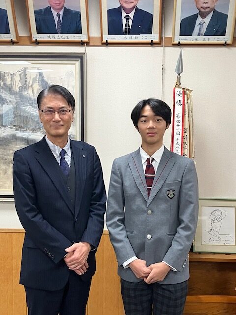 11月27日、アイススケート部フィギュア競技の小河原泉颯君が近藤校長先生に大会報告を行いました。