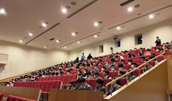 理大ホールで開催された標記大会に、本校の中学生(1、2年生)と高校生(グローバルサイエンスコース1、2年生)と一緒に参加しました。この大会は、7月中旬から10月上旬にかけて11の国と地域で行われた地区大会で選ばれた11名がオンラインで登壇し、今回のテーマである「私の夢」について日本語で熱く語りました。日本語教育のほとんどを日本国外で受けた彼らの弁論は、それぞれの出身地の文化、習慣を背景とした素晴らしい語り口で、中学生・高校生とも熱心に聞き入っていました。私も多くの学びを得た大会でした。