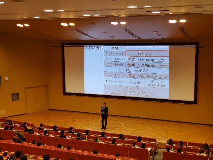 これから、国語、数学、英語の順番に本校の昨年度の入試問題の解説をお聞きいただきます。中3の皆さんは、講座の内容をしっかり聞いて、試験対策のポイントを押さえて、約1か月後にある本校の受験に備えていただければと思います。