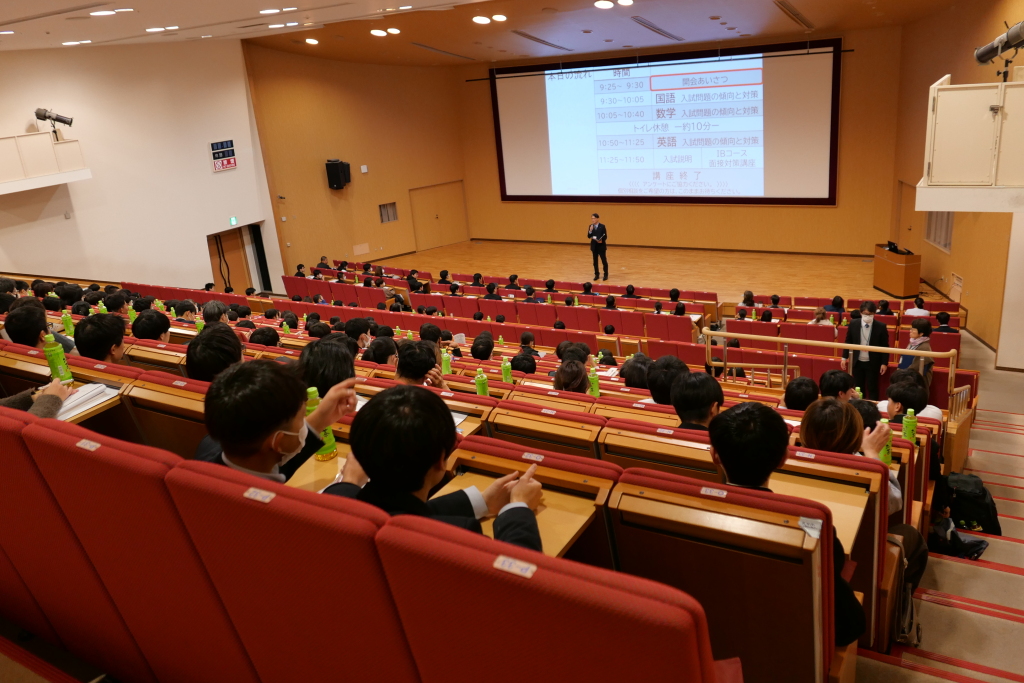 昨年度入試問題(国語・数学・英語)の解説を実施し、保護者対象説明会も行いました。その後、希望者には個別相談を行い、入試や出願、普段の学校生活の様子やカリキュラムなど、様々な質問を受けました。