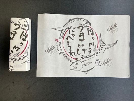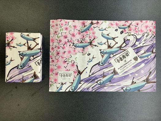 令和8年1月16日(金)本校普通科総合進学コースアニメ・デザイン系2年生の作品が「吾妻寿司」の包装紙として採用されました