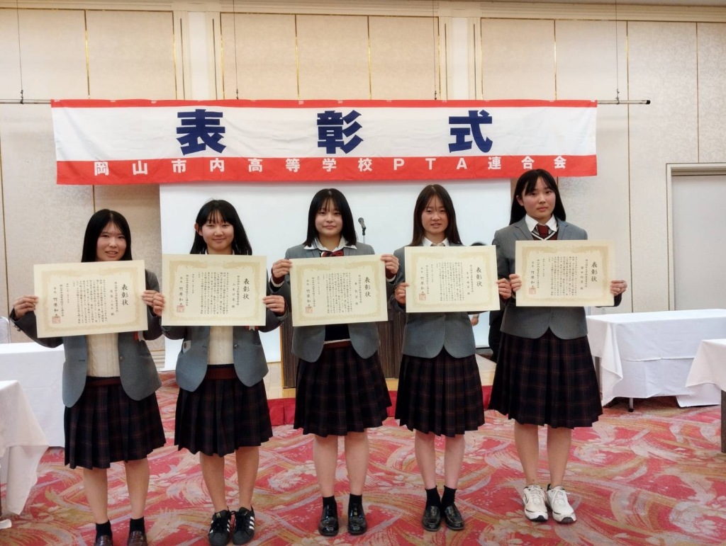 1月15日ピュアリティまきびにて、岡山市内高等学校PTA連合会による「善行生徒表彰」がありました。本校ゴルフ部の5名(青井姫奈、園田結菜、秦悠栞、光浪くるみ、山室日菜)が、酔っ払い溝に落ちたご年配の方を救助。ご自宅に連絡し、散乱した手荷物をまとめ、自宅近くまで送迎したという善行を表彰されました。