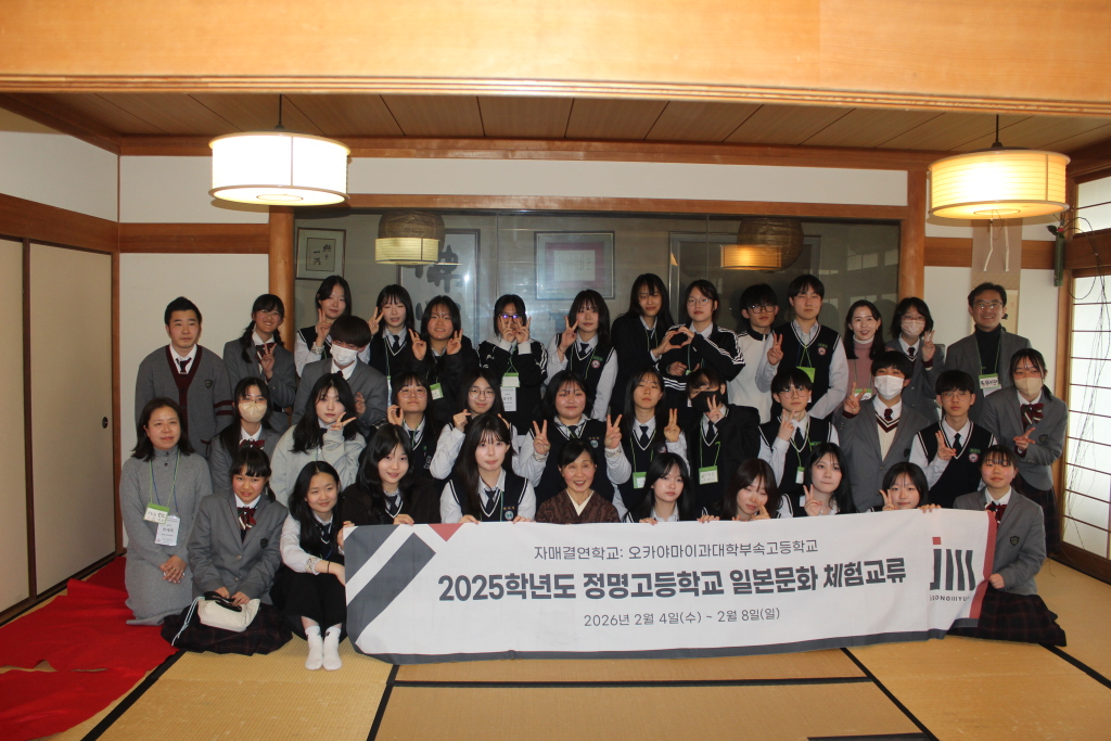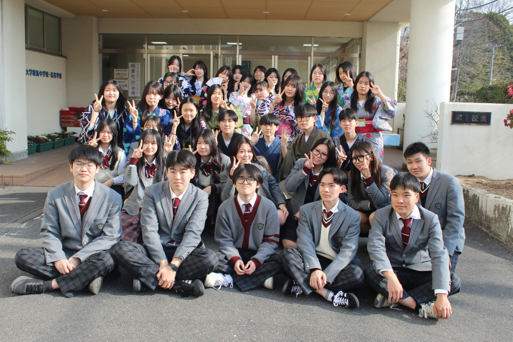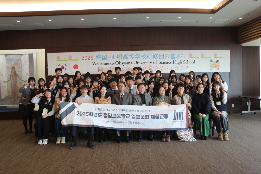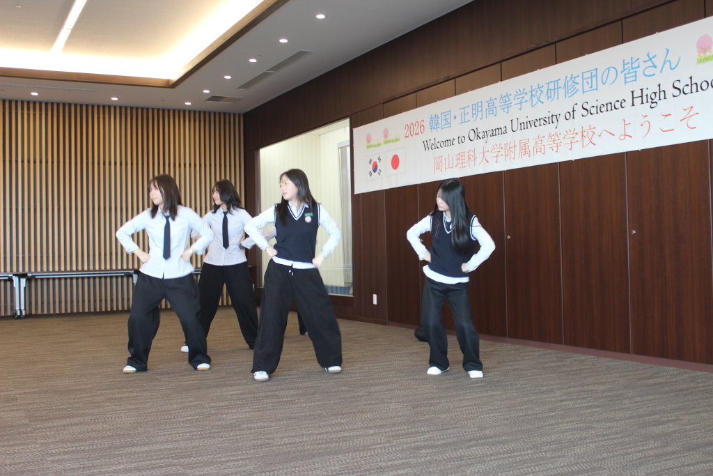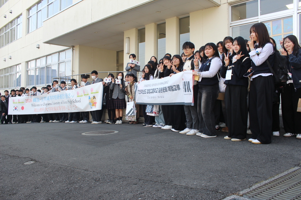 毎年恒例の韓国・冨川市の正明高校から高校1・2年生の24人と引率の先生3人が2月5日に岡山に到着し、6日に本校を訪問してくれました。