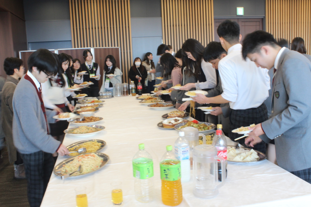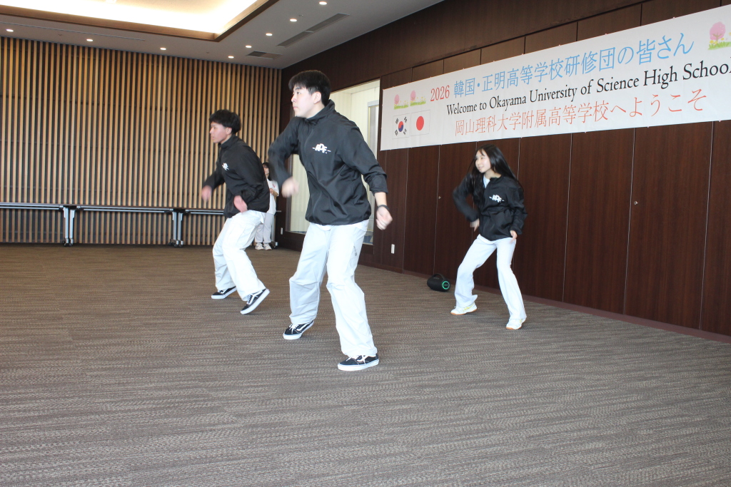 昼食歓迎会は大学A1号館の11階のラウンジで開かれました。代表の先生方・生徒代表のあいさつ、本校ダンス部のパフォーマンス披露や韓国の生徒たちのダンスの披露など、あっという間の楽しいひと時でした。