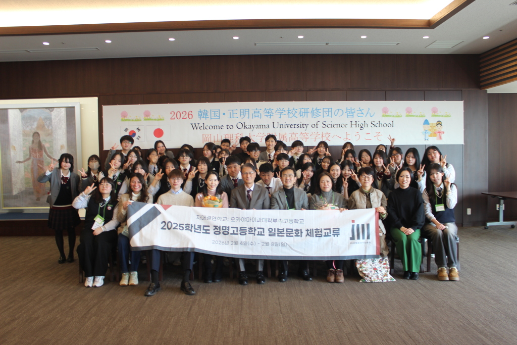本校と正明高校は、23年前に教育交流協定を結び、互いの国を訪問しながら学び合い、友情を深めてきました。新型コロナウイルスの影響で一時中断しましたが、昨年10月に私たちが貴校を訪問させていただきました。そしてこのたび、皆さんを本校にお迎えできることを大変嬉しく思います。