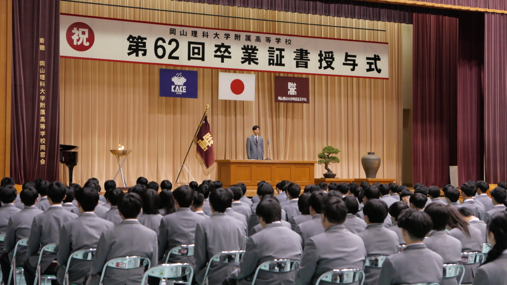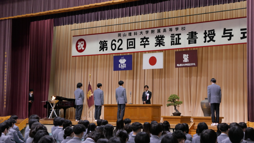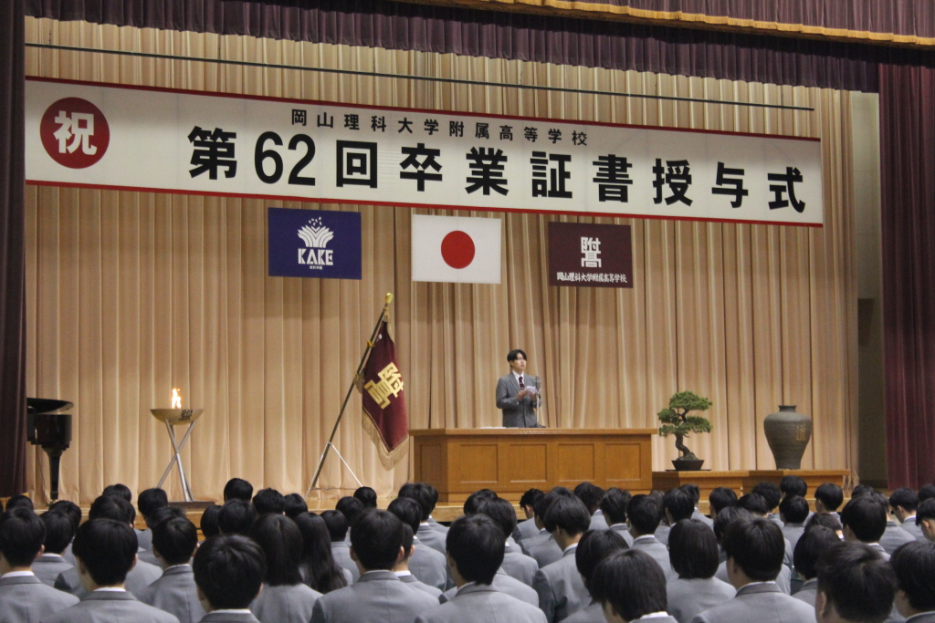 また、岡山県知事伊原木 隆太様から卒業生へお祝いのメッセージが披露されました。