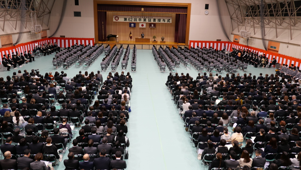 3月1日(日)、第62回卒業証書授与式が本校体育館で挙行され、ご来賓・保護者の方に見守られながら、296名の卒業生に証書が授与されました。